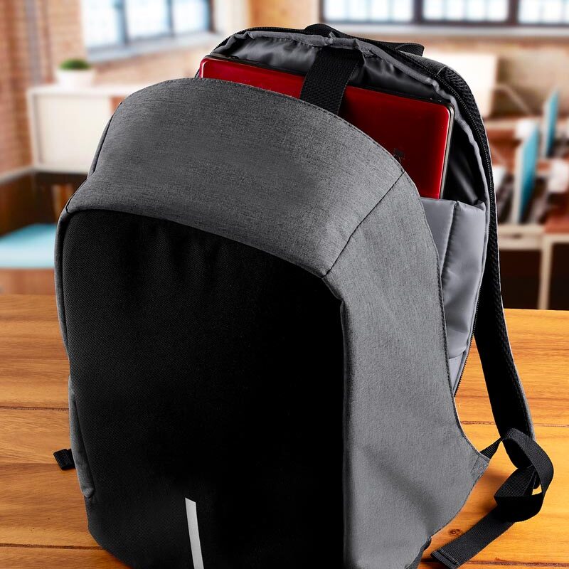 Mochila antirrobo porta laptop con línea reflejante.
