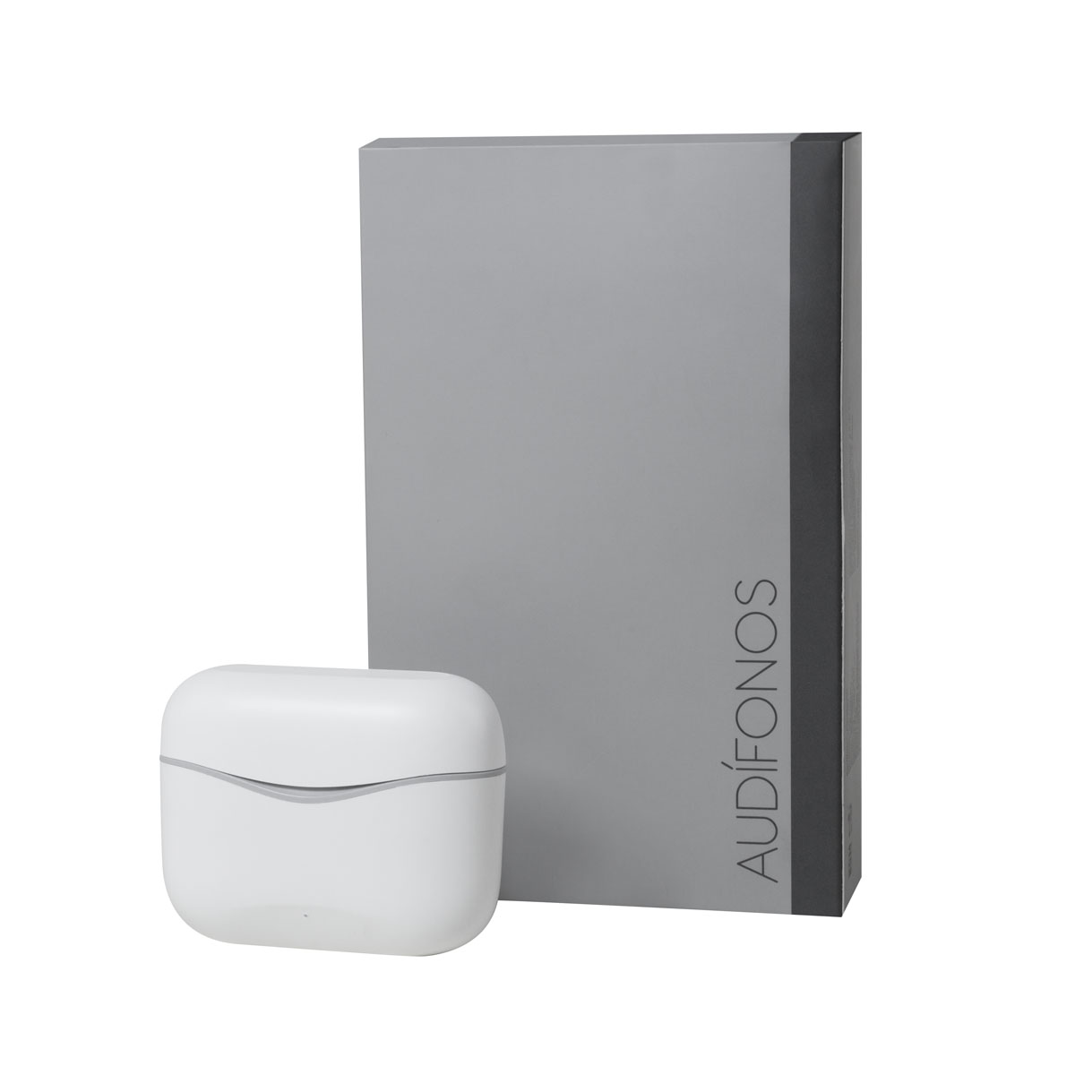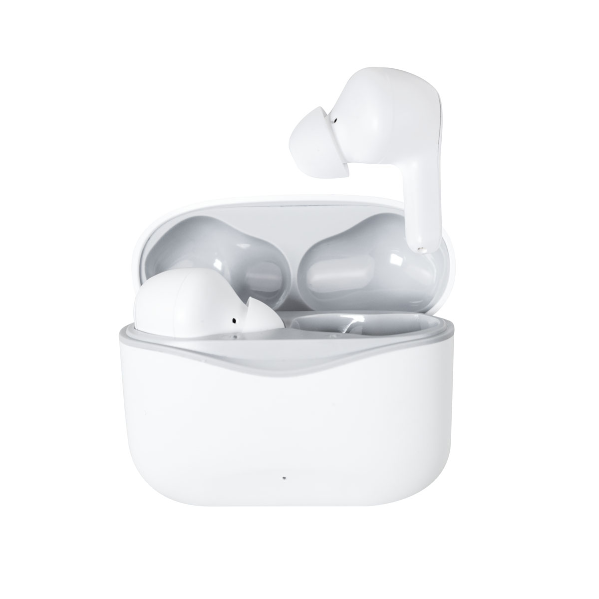Audífonos bluetooth con base recargable, touch para control de reproducción y función de llamada.